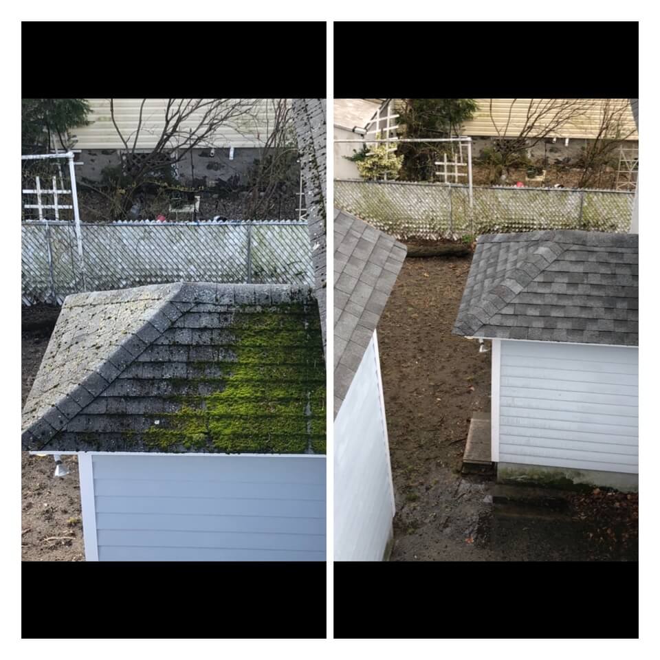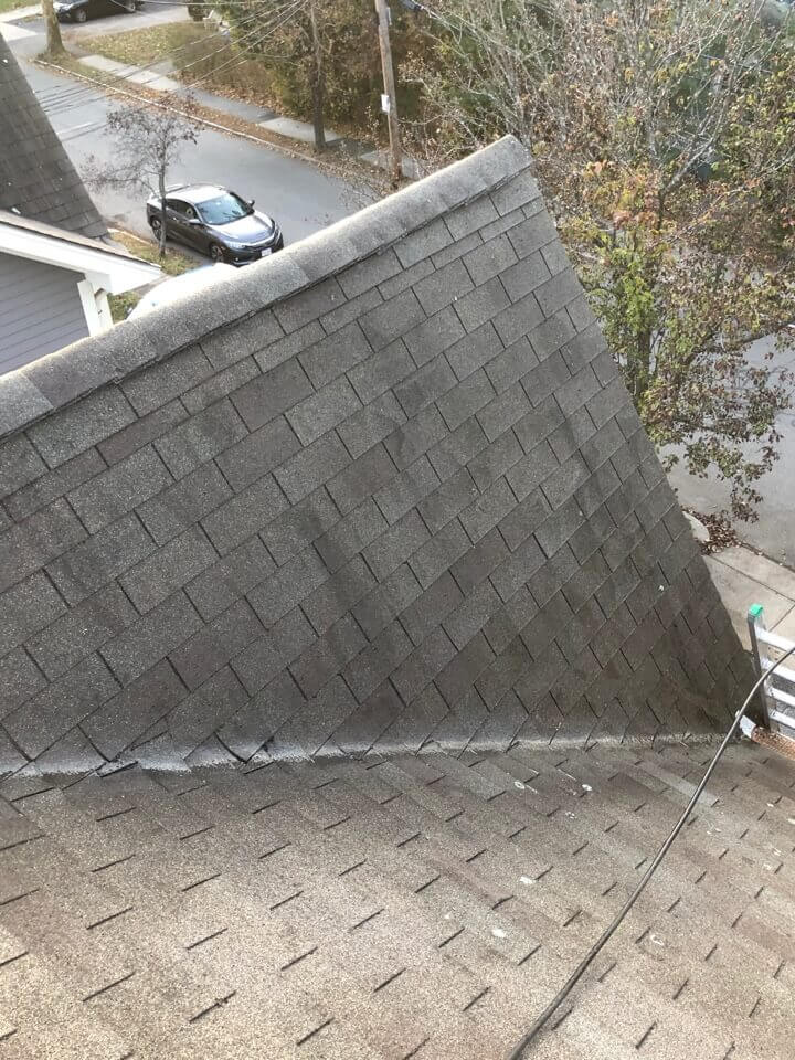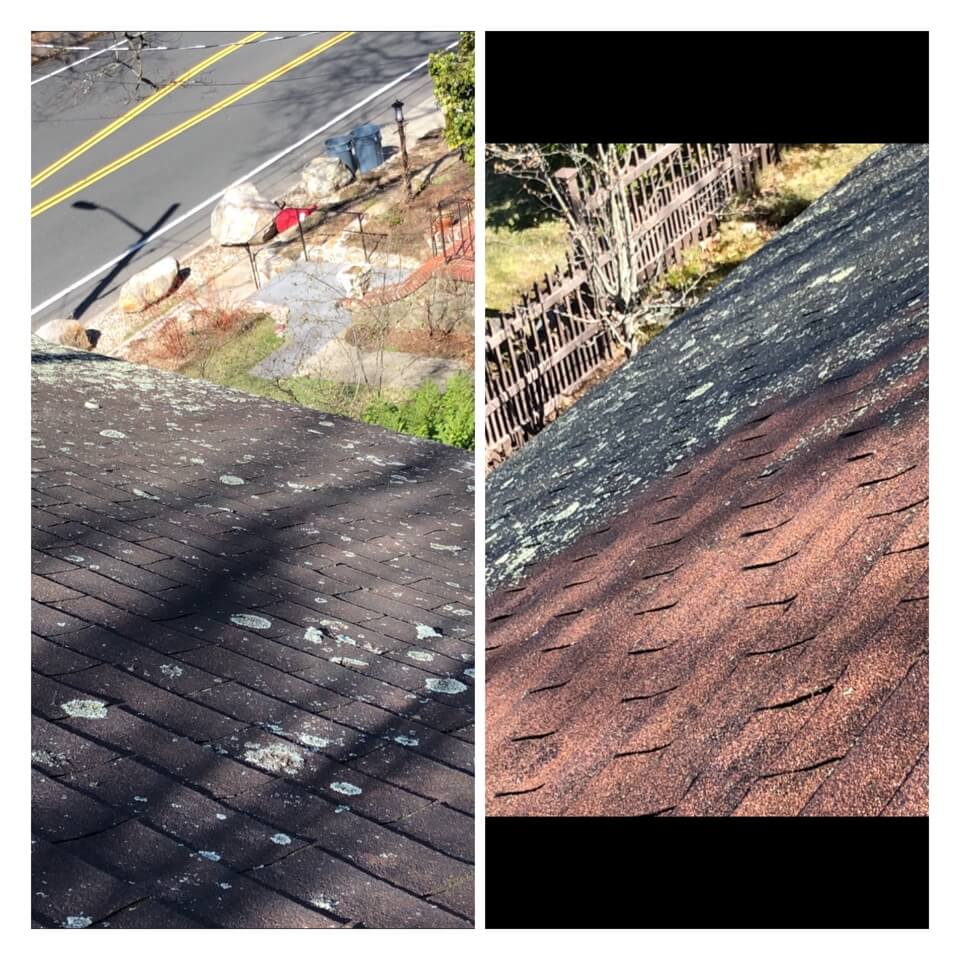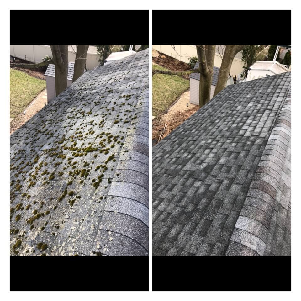 HiCleaners is the most experienced company in Nashua, NH that deals with roof washing and roof soft washing. All of our employees are trained to recognize precise solution mixing ratios to provide you with the safest and most effective soft washing service. Roofs are a commonly neglected part of a house due to the fact that most people don’t have ladders to access it, so it is very easy to just leave it alone and forget about problems that may start to arise. Just like many home owners, discoloration and small bits of moss on a roof can be overlooked because of the misconception that it is just aesthetic. However, it isn’t just aesthetic, the moss slowly lifts the granules off the shingles which in turn shorten the life of the shingle. The moss also spreads, just like any bacteria if it is left alone for too long, it can quickly become a problem that spirals out of control. Call HiCleaners for a free quote, we only use the most advanced eco-friendly solutions and equipment to make sure the job is done right, for the safety of the employees, your plants, grass, pets, and children.